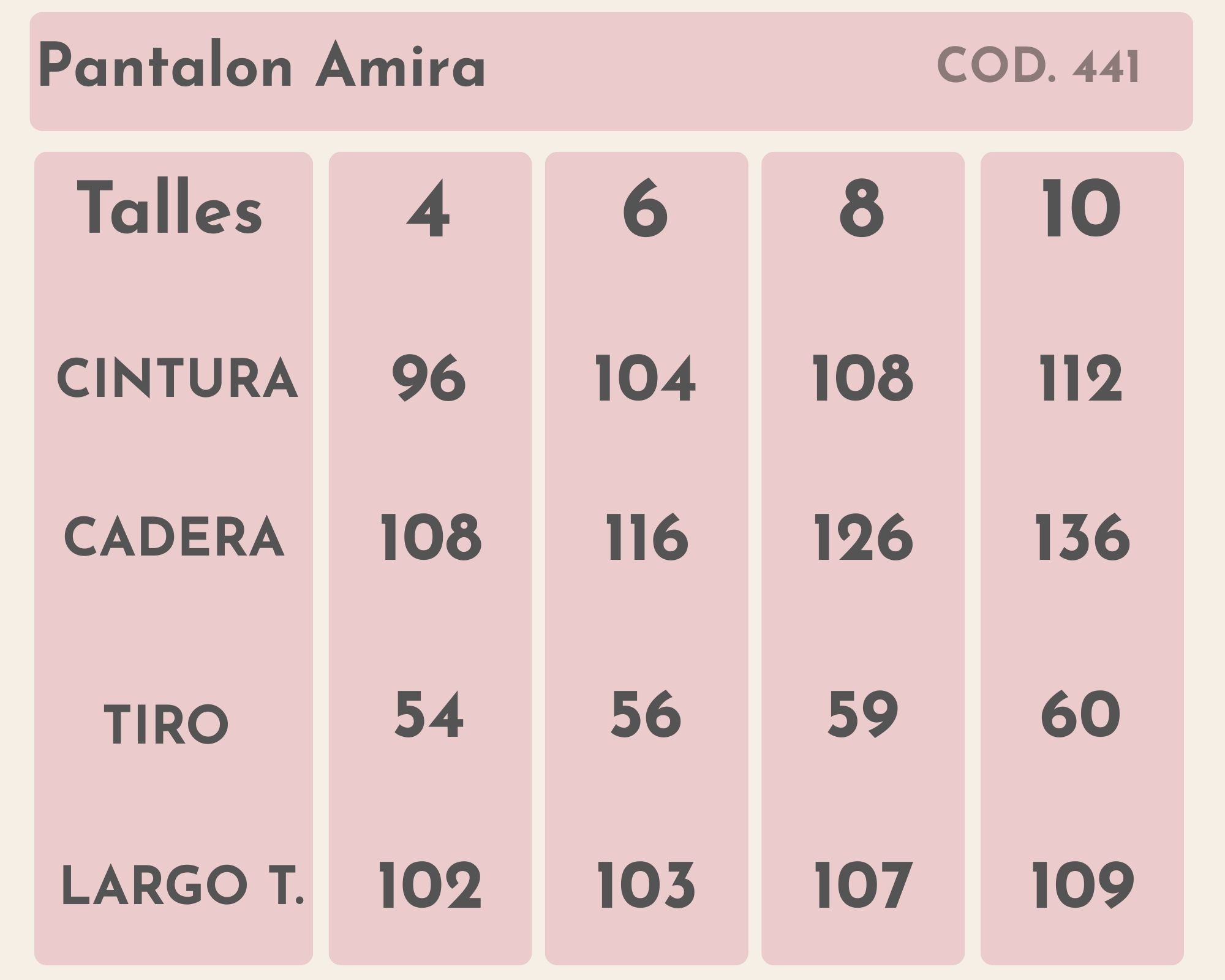 | Talle | 6, 8, 10 |